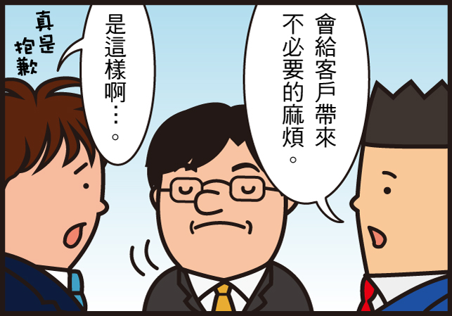 因為您個人單方面所發表的意見,客戶可能會有不同的曲解。不單會傷害到公司好不容易與客戶間建立的良好關係,更有可能會因此失去這個客戶,而且客戶在業界的評價也可能會因此暴跌也說不定。