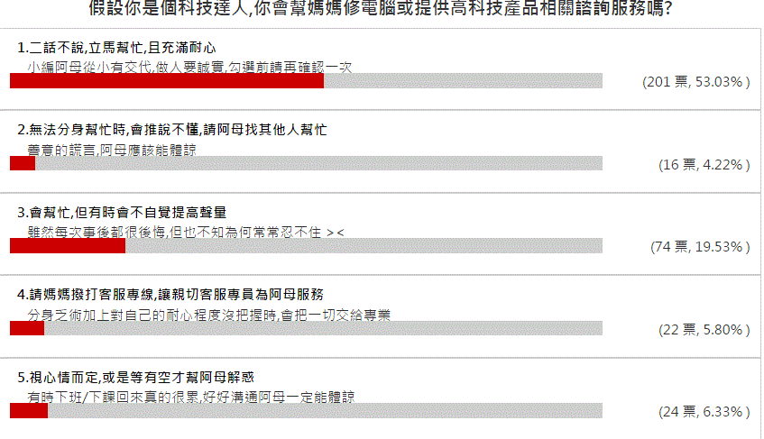 - 視心情而定,或是等有空才幫阿母解惑(6.3%)