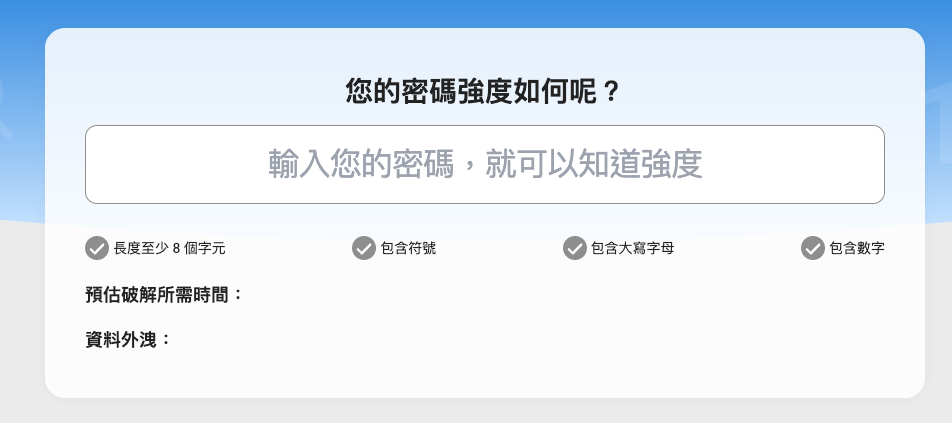 你的密碼強度夠安全嗎?現在就輸入您的密碼,趨勢科技密碼管理通可以幫您⟫立即檢查!