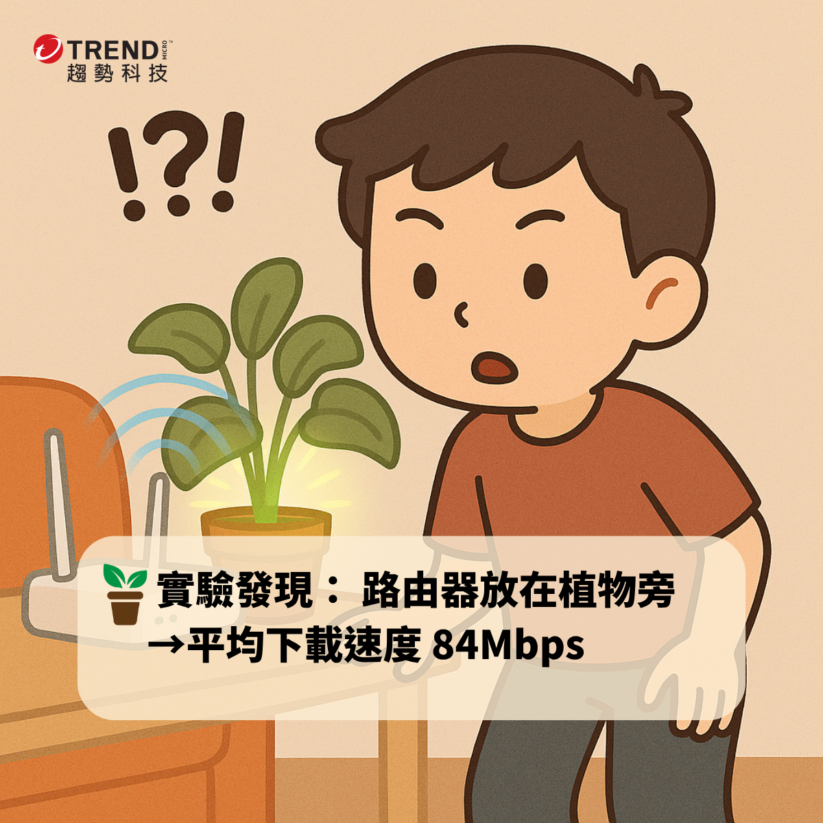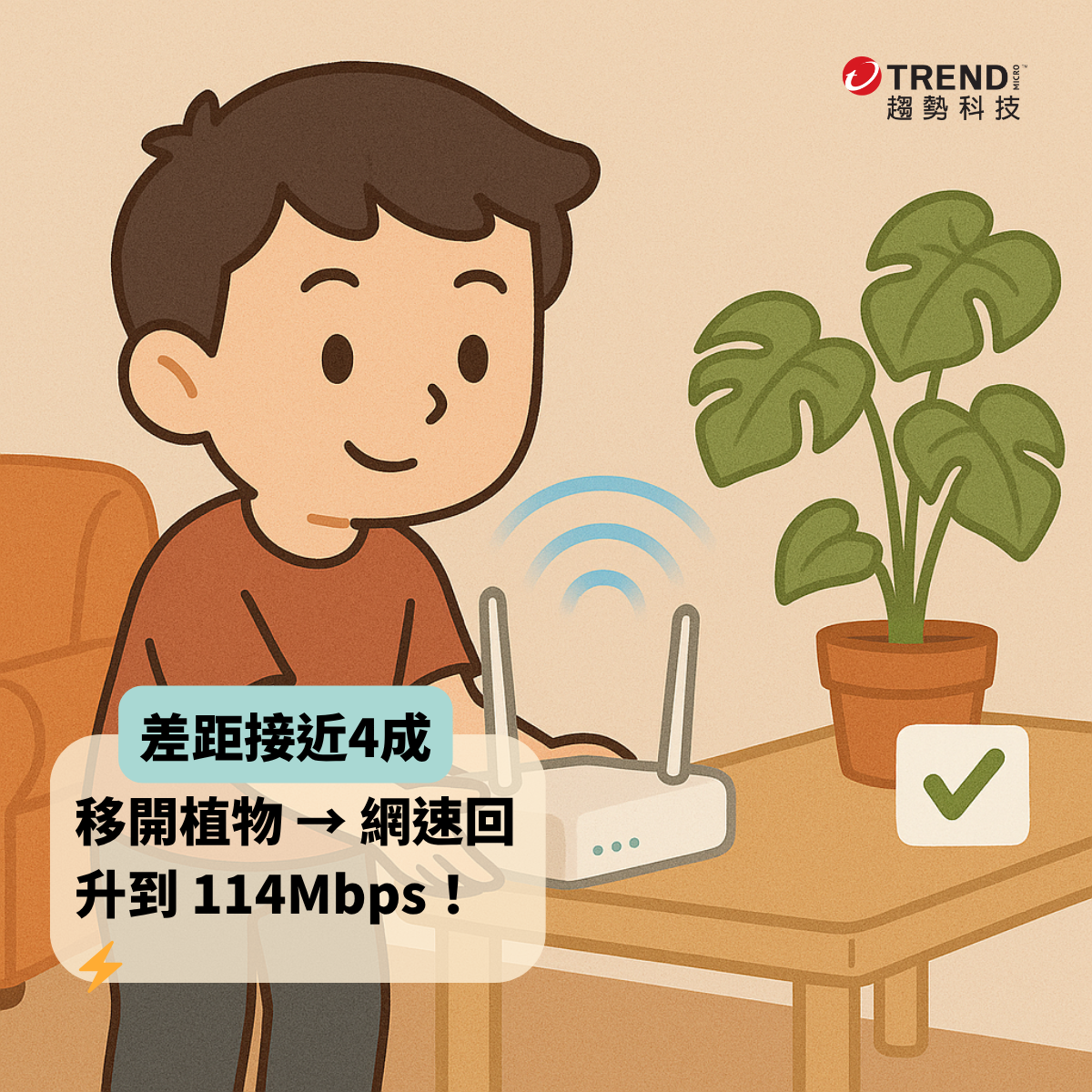 路由器在植物旁 → 平均下載速度只有 84Mbps