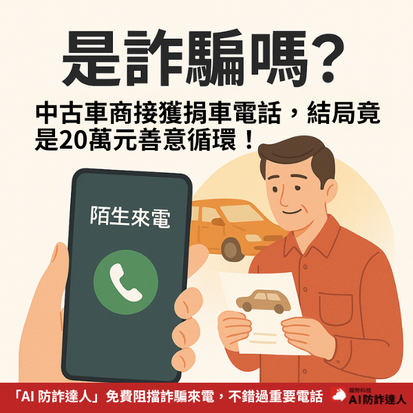 「又是詐騙老梗?」中古車商接獲陌生捐車電話,結局竟是20萬元的「洋蔥式」善意循環!