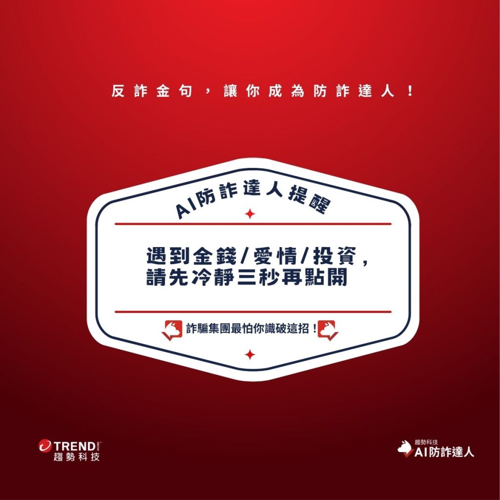 ◎瞭解更多 趨勢科技AI 防詐達人與刑事警察局合作,全新升級「詐騙預警雷達」比你更早發現詐騙